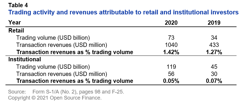 Of this, retail transactions comprise a relatively small proportion (38%) of trading volume but a disproportionately large proportion (95%) of transaction revenues