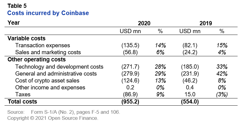 In the table below, I summarise the costs incurred by Coinbase in 2019 and 2020.